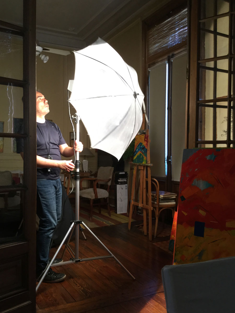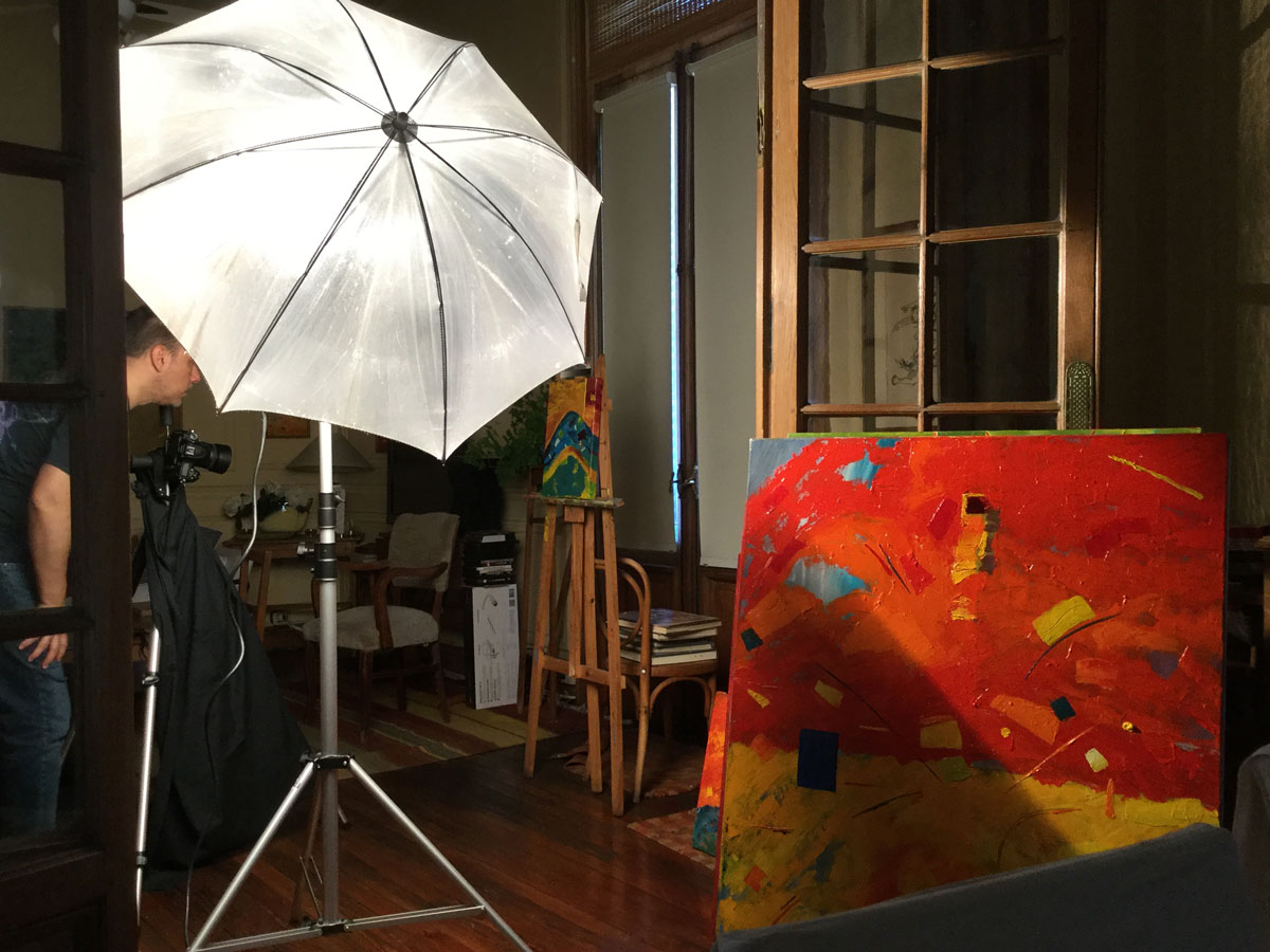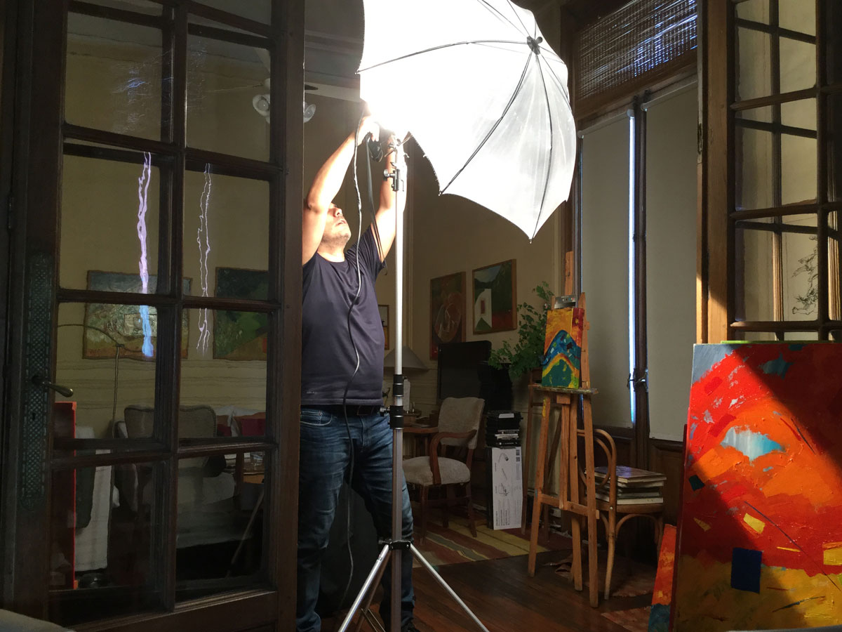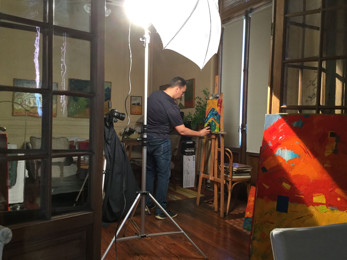 Fabián Cañás, de gran trayectoria en los ámbitos culturales, hijo del reconocido artista plástico Carlos Cañás, fotografiando mis obras.