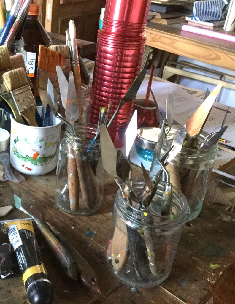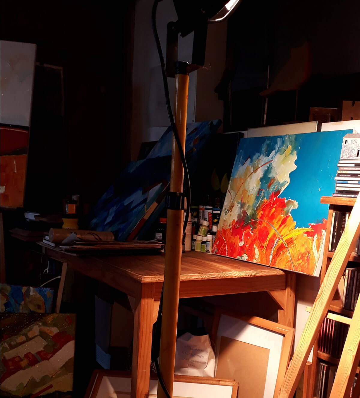 Tomo una espátula y empiezo a mezclar. No hay ningún color en estado puro. Después van apareciendo formas, impensadas al comienzo pero que también se me van imponiendo y llevando hacia algún lugar. Y luego trabajo sobre ese lugar que ha surgido vaya a saber de dónde. Así se va construyendo la obra. Ésto hace que ninguna se parezca a otra y que en todas la supremacía sea el color.